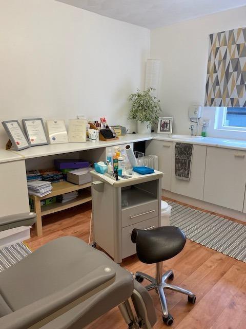 Facilities: Spacious, fully equipped treatment rooms including podiatry chair, gait analysis, and shockwave therapy equipment.