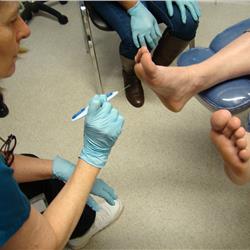 Home > courses > diabetic foot management in practice clinical assessment and intervention Diabetic Foot Management in Practice: Clinical Assessment and Intervention Sat 28th Mar 9:00 - 17:00 The Institute of Podiatrists - Clinical Training Centre, 150 Lord Street, Southport, PR9 0NP Members: £199, NON-Members: £249 Maximum 10 delegates About the Course Our highly regarded Diabetic and Vascular Assessment and Management Course has been comprehensively updated to include a unique hands-on clinical component, providing delegates with direct experience of diabetic foot screening in a live clinical setting. Delivered at our dedicated, state-of-the-art training clinic in Southport, this course combines theoretical learning with supervised clinical practice, ensuring participants leave with both the knowledge and confidence to deliver high-quality diabetic foot care in line with current professional standards and guidelines. This course is ideal for HCPC-registered podiatrists, Foot Health Practitioners, nurses, and allied healthcare professionals involved in diabetes care, as well as clinicians seeking to refresh or expand their knowledge of diabetic and vascular assessment within a structured and supportive learning environment. Course Aim To enhance the clinicians’ understanding of diabetes-related foot pathology, vascular assessment, and evidence-based management strategies, while providing practical experience in performing and interpreting diabetic foot screenings. Course Schedule Duration: 1 full day (theory and clinical practice) Delivery: Combination of interactive lectures, demonstrations, and supervised clinical practice Assessment: Continuous observation and feedback from the clinical trainer 9am arrival / refreshments 9.15am session 1(theory presentations) 10.30am break (15 mins) 10.45 - 12pm session 2 - Equipment, note taking, referral 12pm - 12.45pm lunch 12.45pm patient set 1 1.30pm patient set 2 2.15pm patient set 3 3pm break (15 mins) 3.15pm patient set 4 4pm patient set 5 4.45pm Clinic Clean, CPD certs / Close Course Sylabus Learning Objectives By the end of the course, delegates will be able to: Explain the pathophysiological effects of diabetes on the vascular and nervous systems of the lower limb. Identify and assess key risk factors associated with diabetic foot complications, including neuropathy and peripheral arterial disease. Conduct comprehensive diabetic foot and vascular assessments using current evidence-based screening tools and techniques. Interpret clinical findings to accurately stratify patient risk and inform treatment and referral decisions. Apply current national and international guidelines to diabetic foot care and management. Deliver effective patient education and self-care advice to support long-term foot health and prevention of complications. Demonstrate practical competency in diabetic foot screening under supervision in a clinical setting. Course Content Theoretical Component Overview of diabetes and its systemic complications Pathophysiology of diabetic foot disease Review of vascular and neurological anatomy of the lower limb Evidence-based diabetic foot risk assessment models Current guidelines for diabetic foot screening, monitoring, and referral Understanding ulceration, infection, and amputation risk factors Review of treatment pathways, multidisciplinary care, and prevention strategies Patient communication, education, and documentation best practices Practical Component Structured hands-on sessions within a working diabetic foot screening clinic Supervised diabetic foot and vascular screening of real patients Use of monofilament testing, Doppler ultrasound, Thermal Imaging Risk stratification exercises and case-based learning Clinical documentation and communication of findings Reflective discussion and feedback on individual clinical performance Tutor Somuz Miah, CFPodM, BSc (PodM), Dip Sp.I, PGC IP, MFPM RCPS (Glasg),is a qualified Sports Practitioner & Podiatrist (Diploma Sports injuries & Electro Therapy). Somuz is a highly respected podiatrist specializing in a variety of foot health and lower limb conditions including diabetic foot care. With over 24 years of experience in preventing and treating diabetes-related foot complications. Somuz has an established history in expertise of wound management, neuropathy assessment and treatment, helping patients maintain mobility and prevent amputations. Venue The Institute of Podiatrists Clinic Training Centre, Southport Lunch and refreshments are provided on this course. Gallery