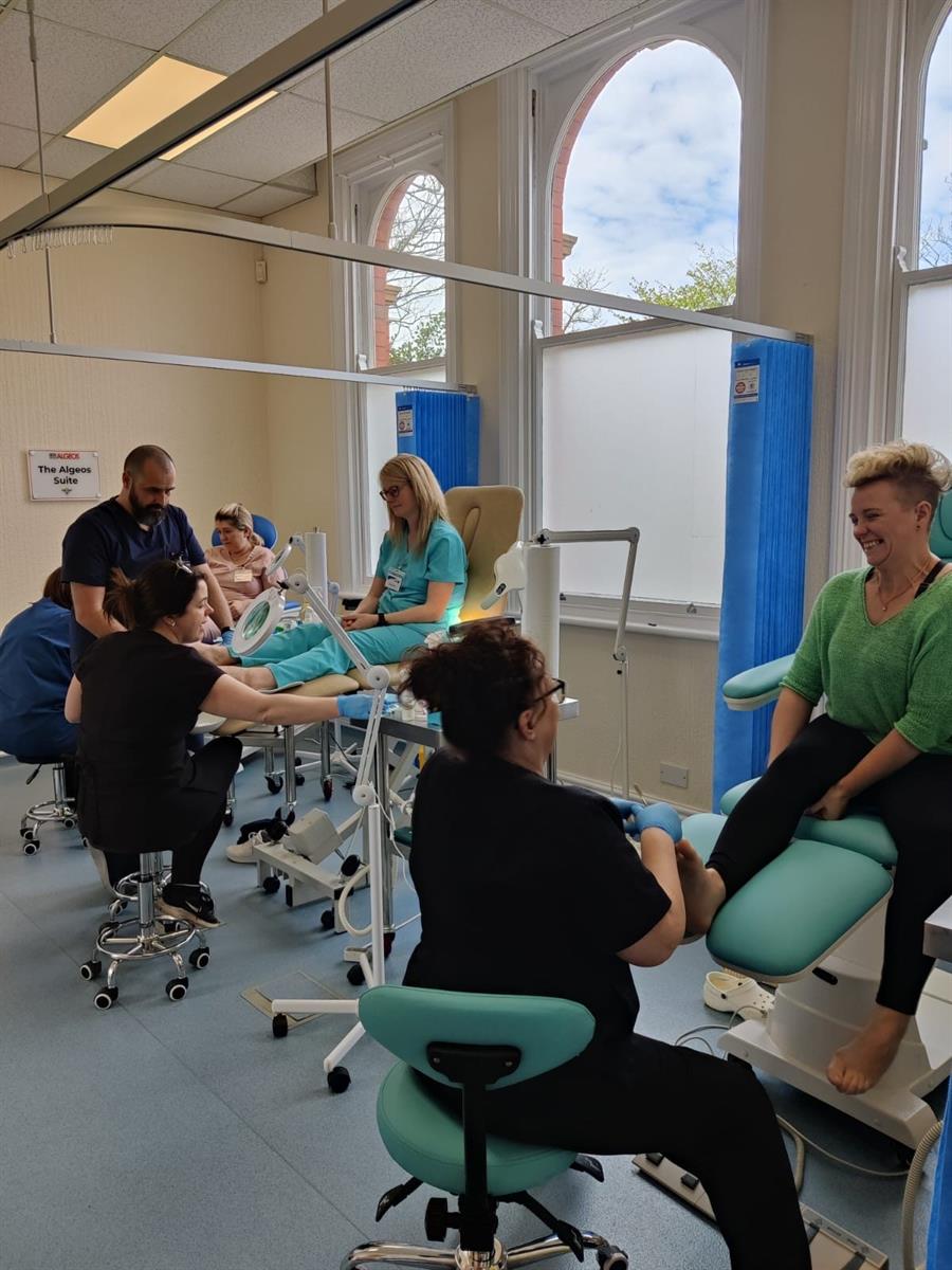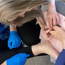 Home > courses > nail correction bracing Nail Correction / Bracing Sat 6th Jun 10:00 - 16:00 Wiggin Centre Sir Robert Peel Hospital Tamworth West Midlands, B78 3NG Members: £199, NON-Members: £249 Maximum 12 delegates This course will investigate nail pathologies frequently seen by podiatrists and foot health practitioners. We will discuss how we can use safe, simple and inexpensive treatment options that avoid surgery, require no anesthetic, have no recovery period, offer quick relief from pain, and can be repeated successfully without trauma. Ingrown toenails are a common and often painful condition that can significantly affect patients’ quality of life. Nail braces offer a conservative, safe, and effective treatment option suitable for various patient groups, including children, those with needle phobia, patients with diabetes or poor wound healing, and individuals with peripheral vascular disease (PVD). They are also ideal for patients who have undergone successful treatment for fungal nail infections, as these nails often grow flatter and wider, necessitating careful management. About the Course Nail braces are evidence-based, affordable for patients, and profitable for practitioners. They provide a non-invasive alternative to more drastic interventions, reducing the risk of complications and promoting better patient outcomes. During your training, you’ll be introduced to a variety of bracing systems readily available to you. These include: Composite solutions: Onyfix RUCK BlueLight Fusion Wired/metal adhesive solutions: 3TO Podostripe RUCK Goldstadt Professional and Adhesive braces: BS Spange 3TO Podostripe The practical sessions will give you hands-on experience with these different systems, allowing you to gain confidence in their application and use. By becoming proficient with a range of braces, you ensure that you can tailor your treatment plans to the specific needs of each patient, rather than being restricted to a single method. This adaptability is crucial in providing the best care possible and achieving optimal outcomes for your patients. Course Schedule 10.00 Welcome and refreshments 10.15 – 12.00 Nail pathologies and treatments options for ingrown toenails. Nail braces – types, patient selection, research and evidence. 12.00 – 12.45 Lunch 12.45 – 13.15 Tutor demonstration 13.15 – 15.30 Student practical’s 15.30 – 16.00 Q&A, Certification and close Course Sylabus Learning Outcomes On completion of this course, participants will be able to: Apply a variety of nail braces with confidence and precision Customise treatment plans for individual patient needs Enhance patient satisfaction with non-invasive, evidence-based interventions Expand clinical offerings and increase practice profitability - with no additional training costs Tutor Gaynor Wooldridge, is a consultant podiatrist working within a multidisciplinary clinic in Kent. She has a passion and commitment to the field of foot health, with special interests in research, injection therapies, wound care and diabetes. She is a great believer that continuing professional development is central to the ‘lifelong learning’ approach so vital within healthcare. Venue This course will be held at Sir Robert Peel Hospital, West Midlands. Plenty of parking is available on site (chargeable). Limited free parking is available on the approach road to the hospital. Refreshments and lunch are provided. Gallery
